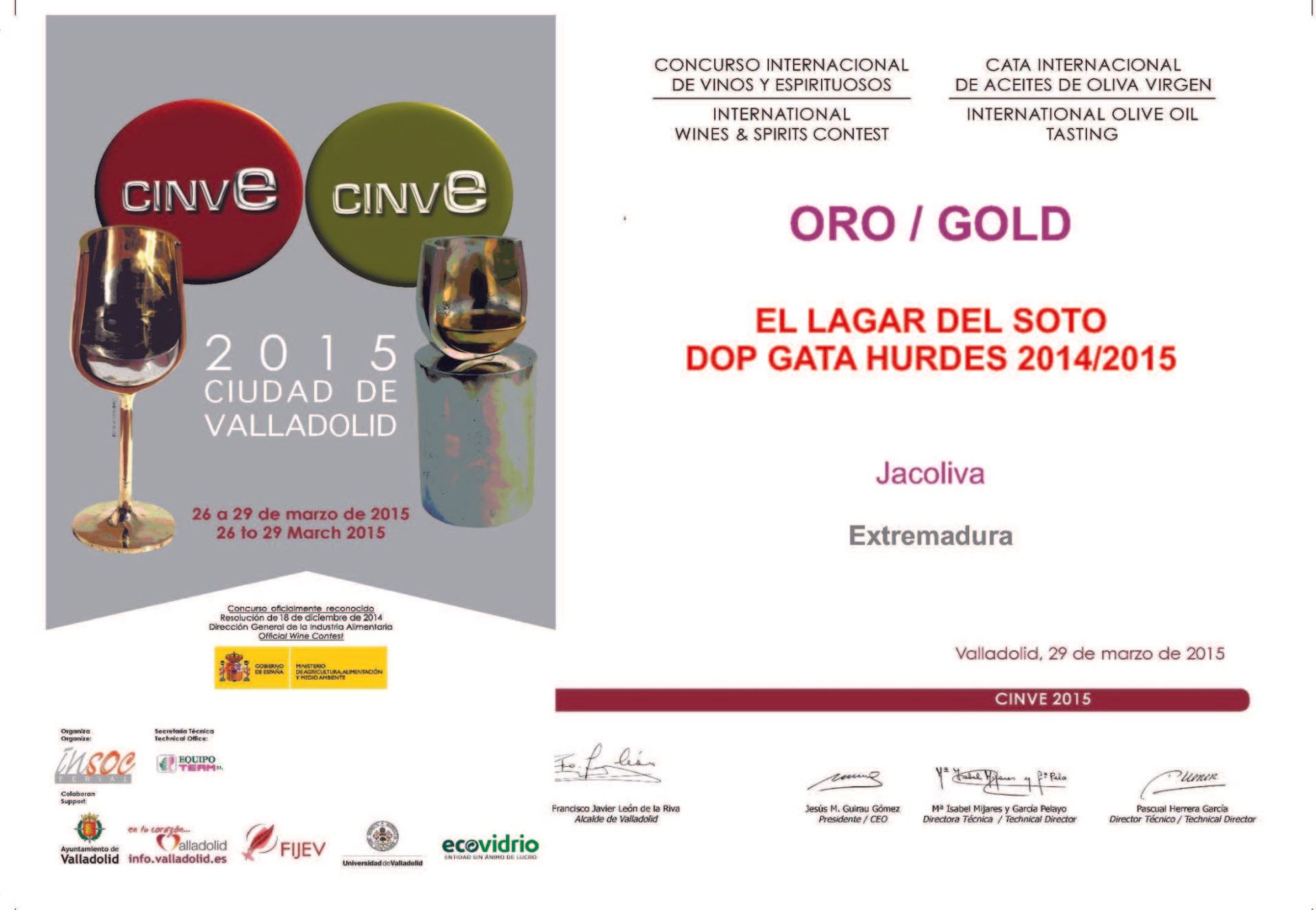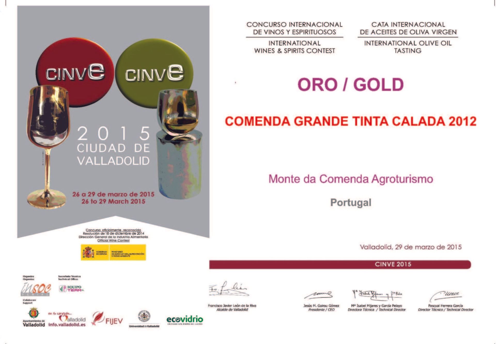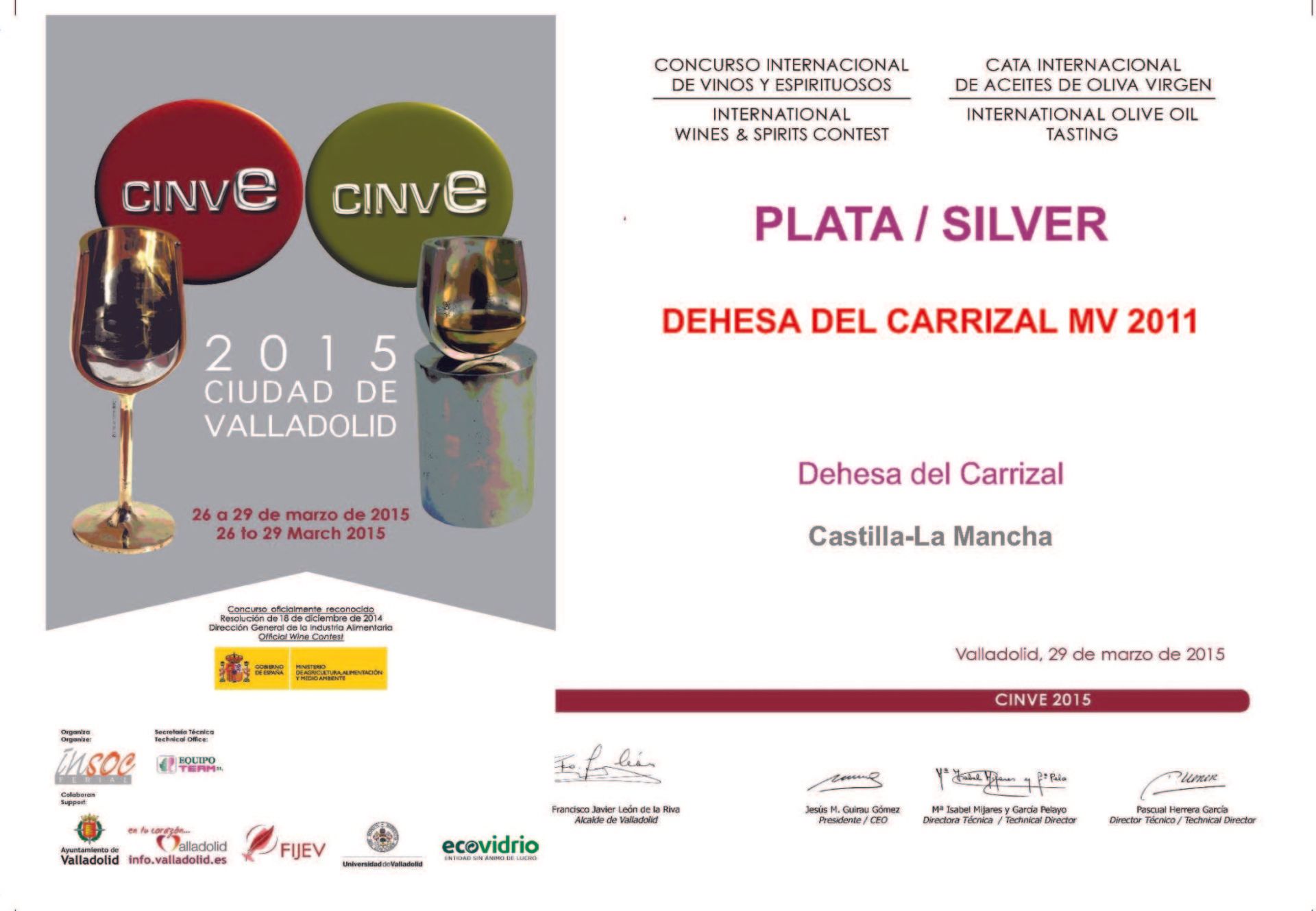 Diplomas of the CINVE'2015 Awards